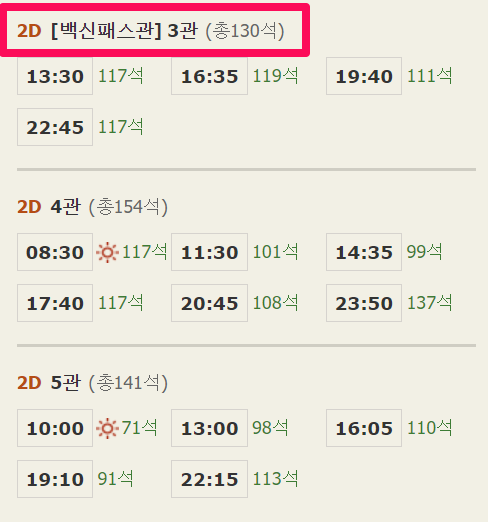 영화를 예매해보시면 상영관이 나누어져 있는 것을 알 수 있습니다 .