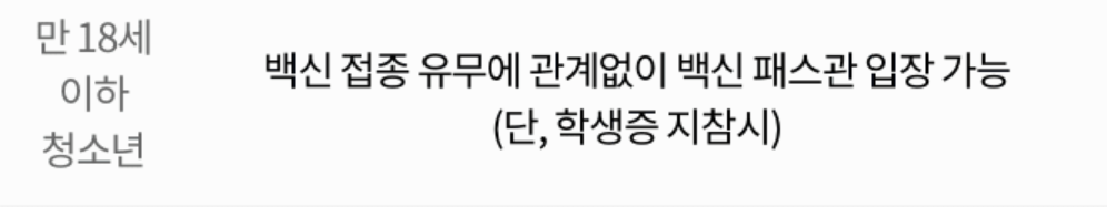 대표적으로 만 18세 이하 청소년은 백신패스 예외입니다.