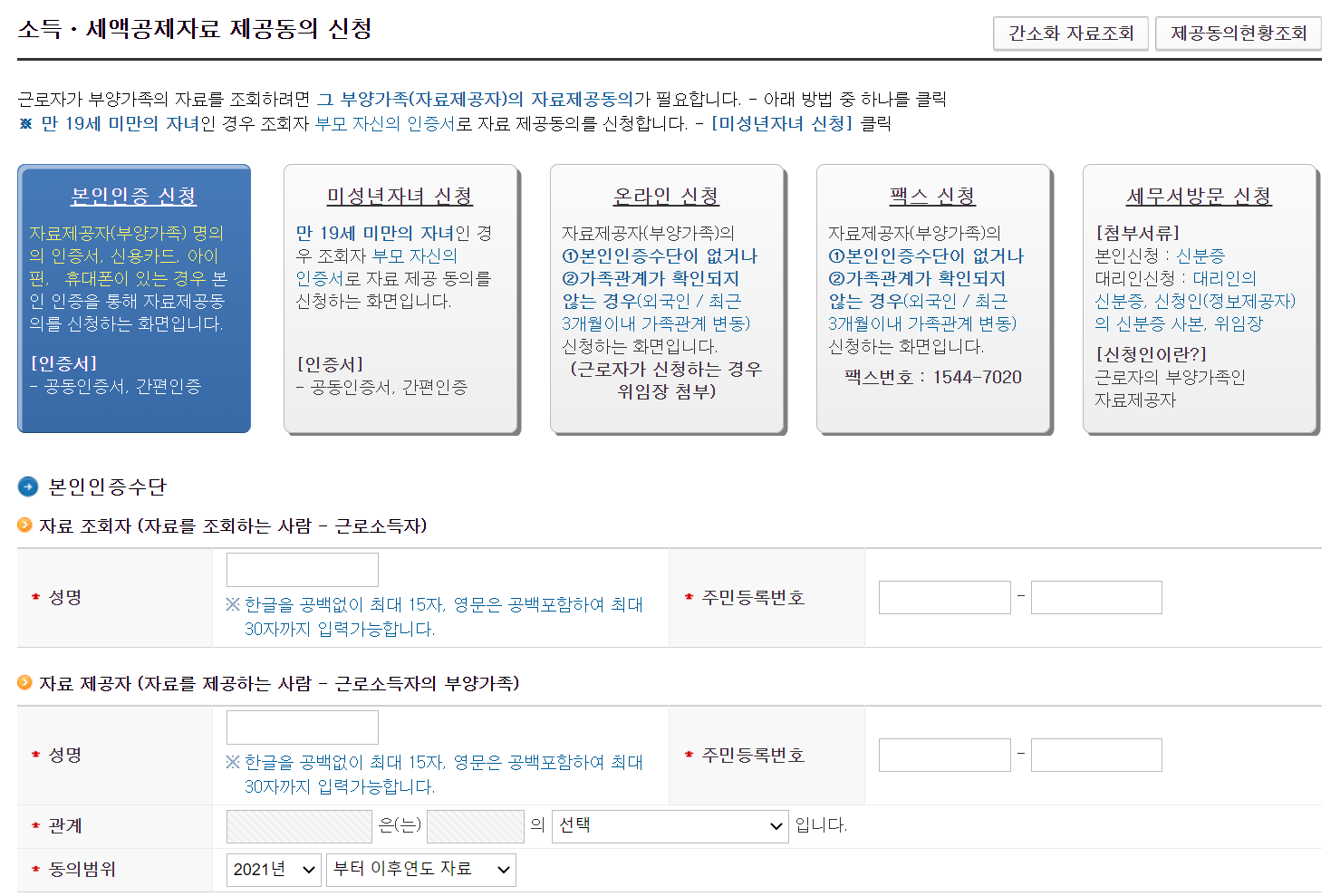 👉 부양가족 자료제공 동의 페이지 바로가기