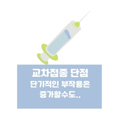 교차접종은 발열, 피로, 두통 등 경증, 중증의 부작용 가능성이 증가될 수 있습니다.