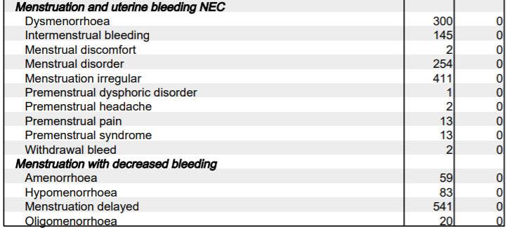 즉 백신 맞고 생리가 늦어졌다는 보고가 541건 있었습니다. 상당히 많은 편입니다.