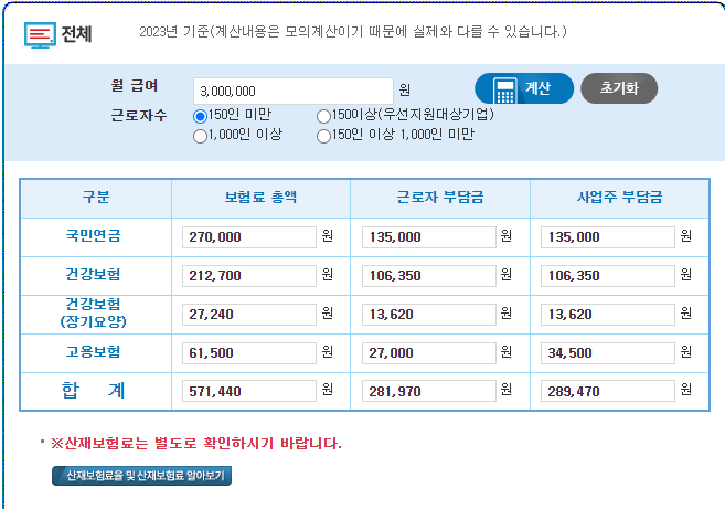 🔻 2023년 4대보험 계산기 바로가기 링크