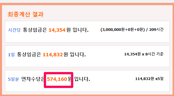 ➡ 수당: 5일 × 114,832원 = 574,160원