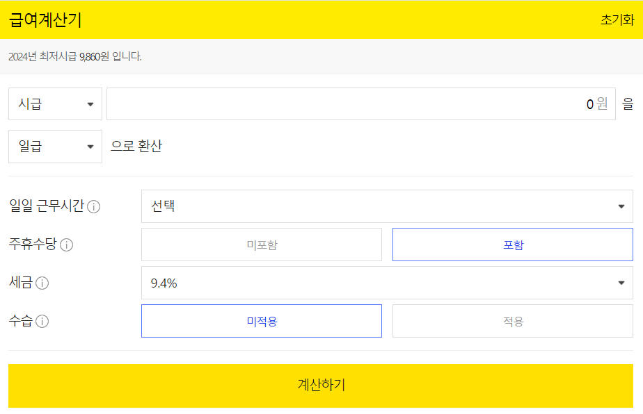 - 시급을 입력하면 총 근무시간에 시급을 곱하여 계산해줍니다.