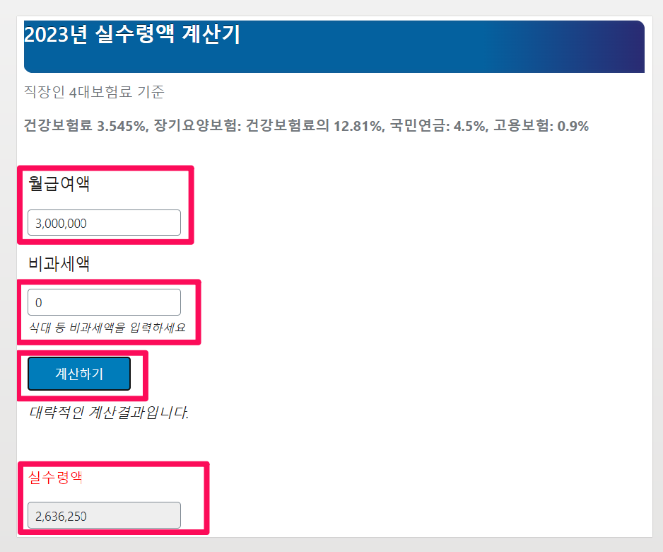 2023년 사대보험 계산기, 월급 실수령액 계산법