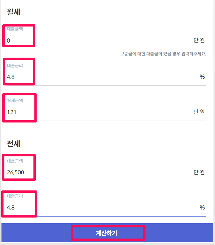 🔻 전월세 계산기를 이용해 쉽게 계산해보겠습니다.