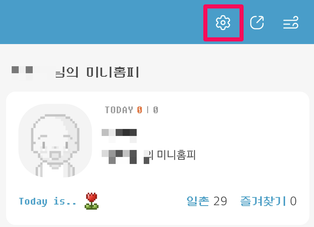▼ 내 미니홈피 상단 톱니바퀴 설정을 누릅니다.