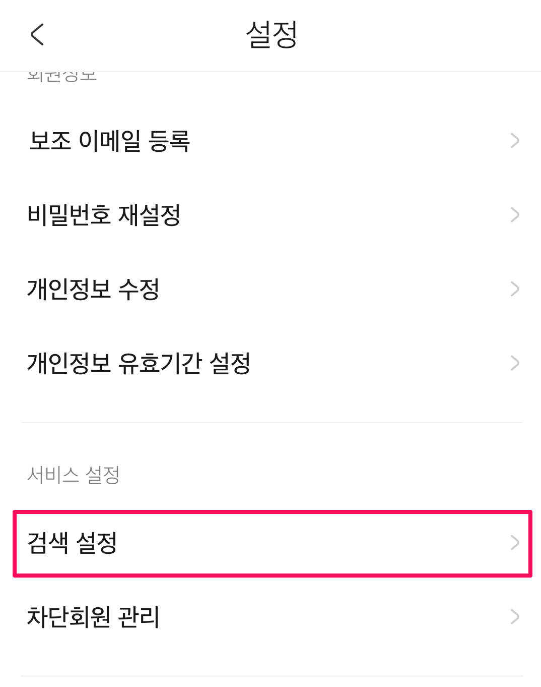 ▼ 설정에 들어가서 검색 설정을 변경합니다.