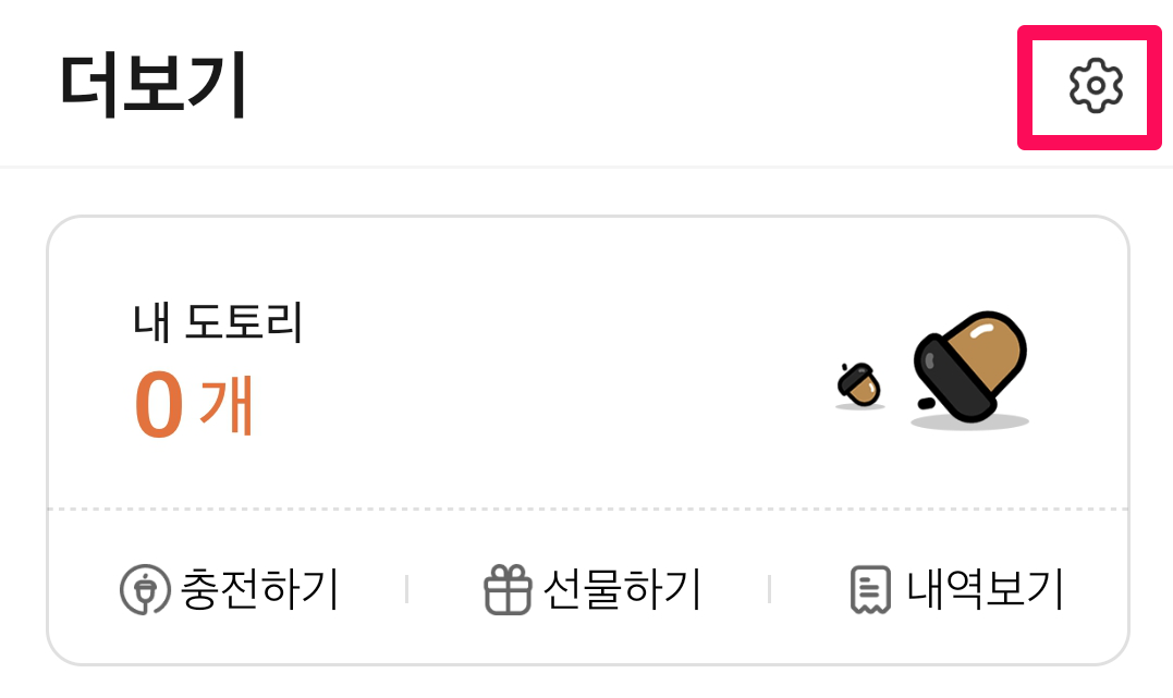▼ 미니홈피 하단에 있는 '더보기'를 선택하고 우측 상단에 있는 톱니바퀴를 누릅니다.