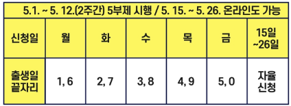 작년 신청은 23년에는 5월 1일~5월 26일로 5월 12일까지는 5부제가 시행됩니다.