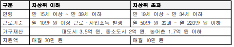 1. 나이: 만 19~34세 청년 (기준 중위소득 50%이하인 경우 15~39세)