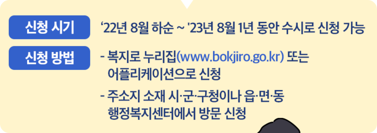 - 온라인 신청: 복지로 누리집, 어플에서 신청