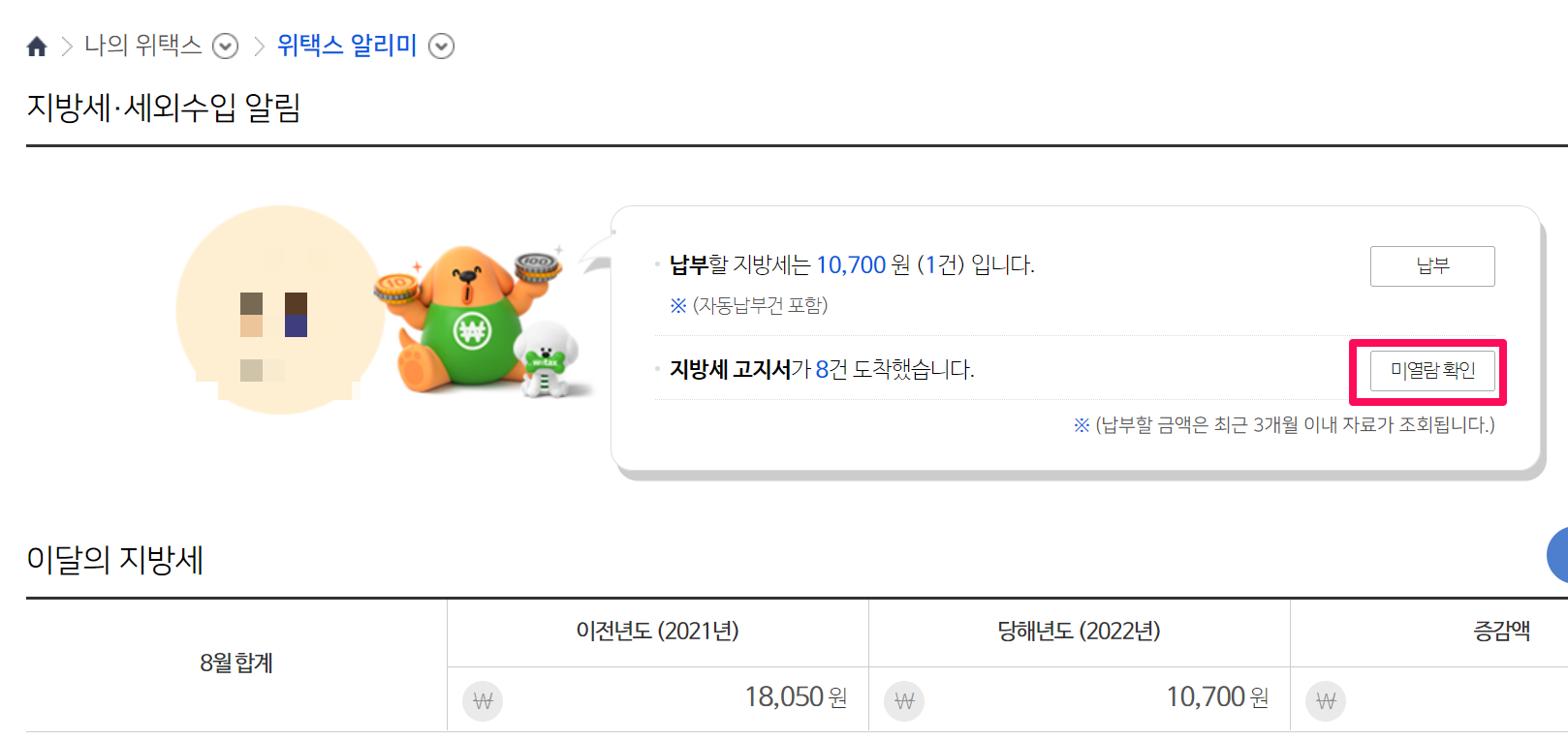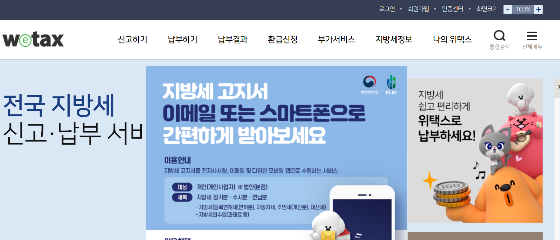 ▽ '나의 위택스'로 들어가면 지방세와 관련된 내역 확인 및 납부도 가능합니다.