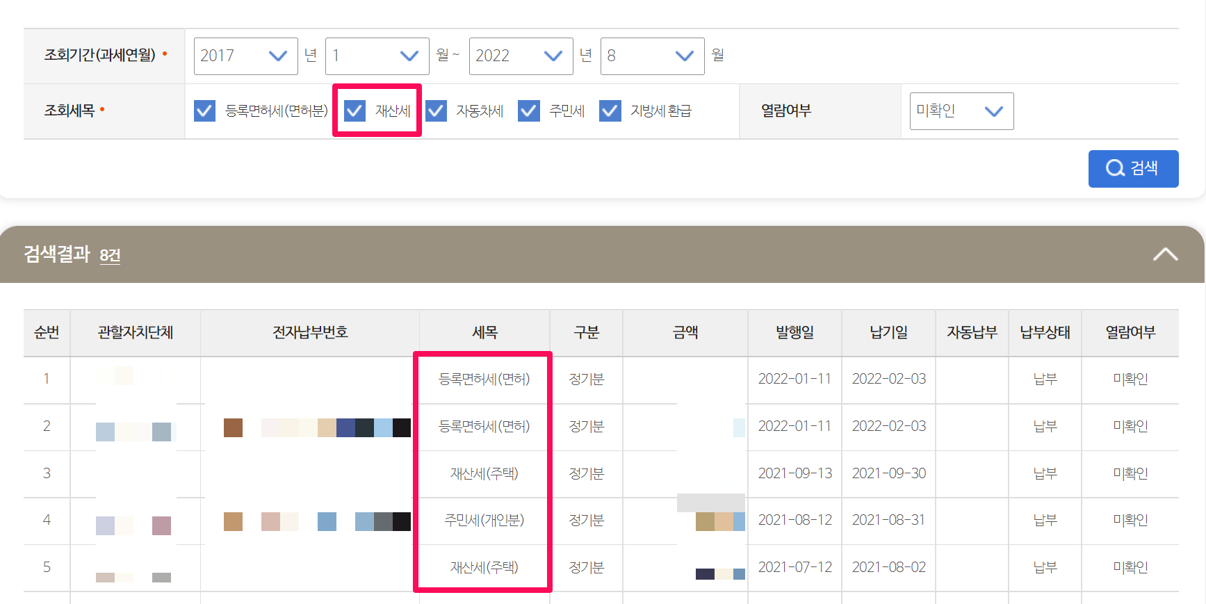 ▽ 지방세 고지서를 확인해보면 이전 납부 기록까지 쭉 확인됩니다.