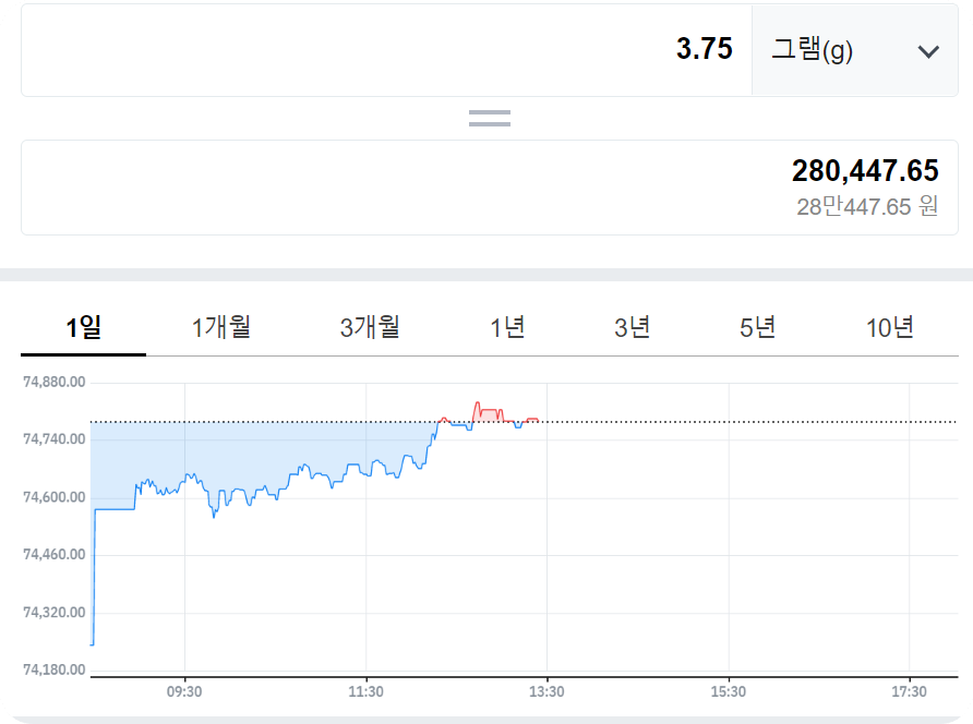② 3.75그램 1돈을 계산하면 순금 1돈 가격은 대략 28만원대로 금 시세 계산기에서 바로 확인이 가능합니다.