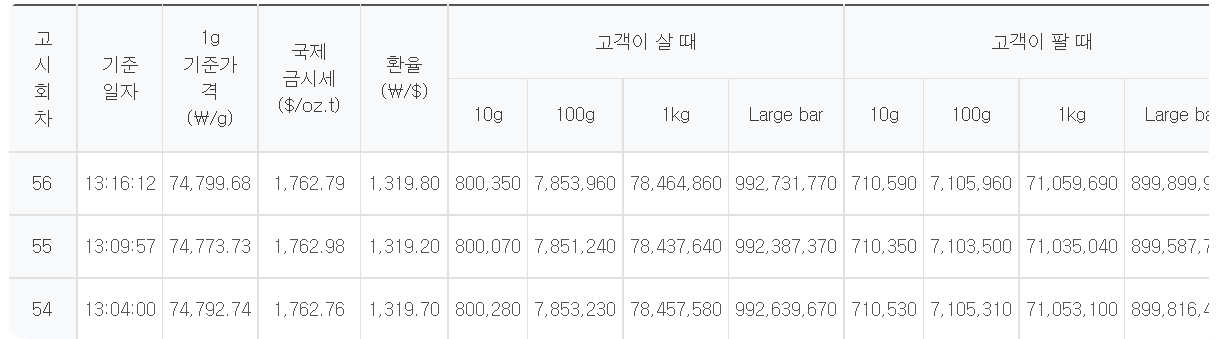 시세가 좋아서 판매를 하고자 한다면 은행 가격(골드바), 주변 시세, 금 거래소 가격 등을 비교해봅니다.
