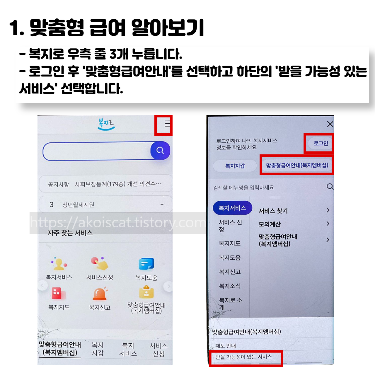 ▲ 복지로 앱에서 로그인한 뒤 '맞춤형 급여안내> 받을 가능성이 있는 서비스'를 선택합니다.