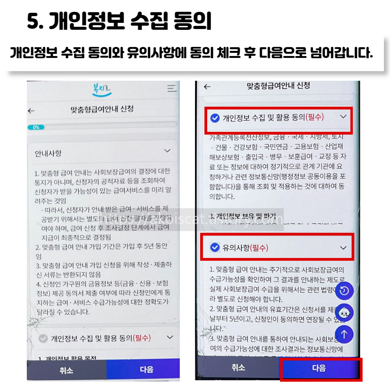 ※ 금융정보 동의의 경우 따로 가구원의 동의를 받아야 하므로 가족이 옆에 없다면 일단 동의하지 않고 넘어갑니다.