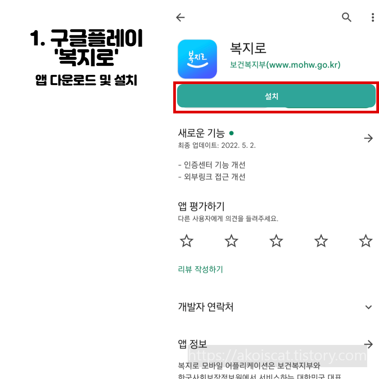▼ 복지로 앱을 다운로드, 설치합니다.
