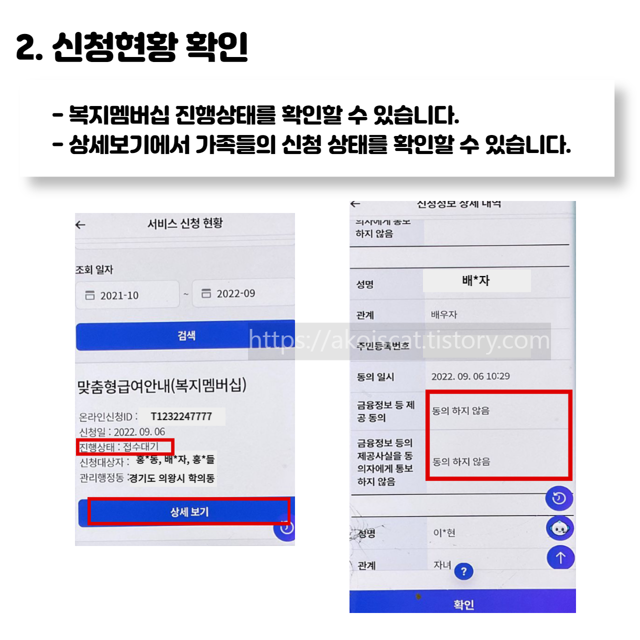 ▲ '상세보기'로 들어간 뒤 가족 정보제공 동의에서 '동의함'을 선택하고 '확인'을 눌러 넘어갑니다.