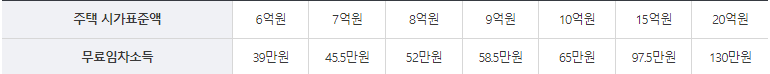 | 아파트 공시가격 | 소득인정액 (부채 없을 때) |