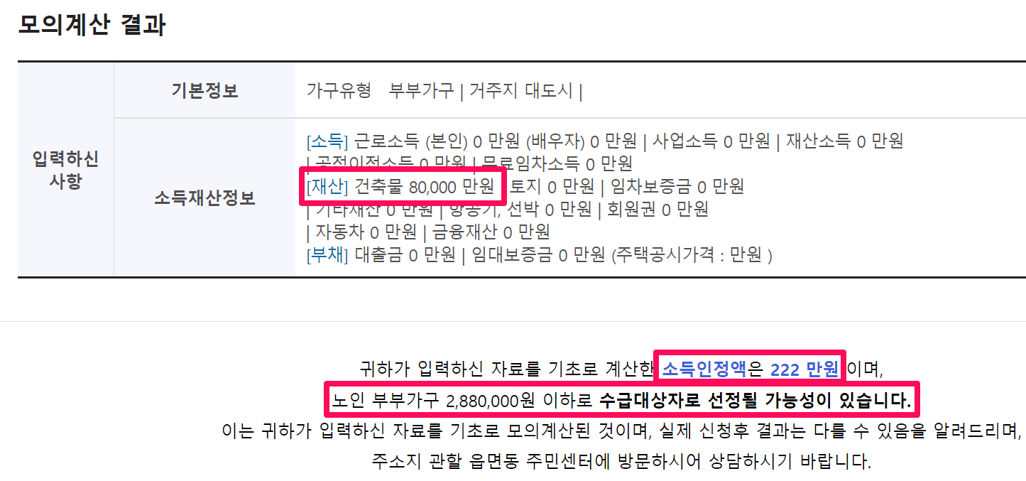 소득, 재산 많아서 안 될 것 같다고 생각되더라도 일단 모의계산해보세요.