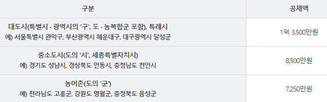 - 경상남도 등 도의 '군' 등 농어촌: 7천 250만원