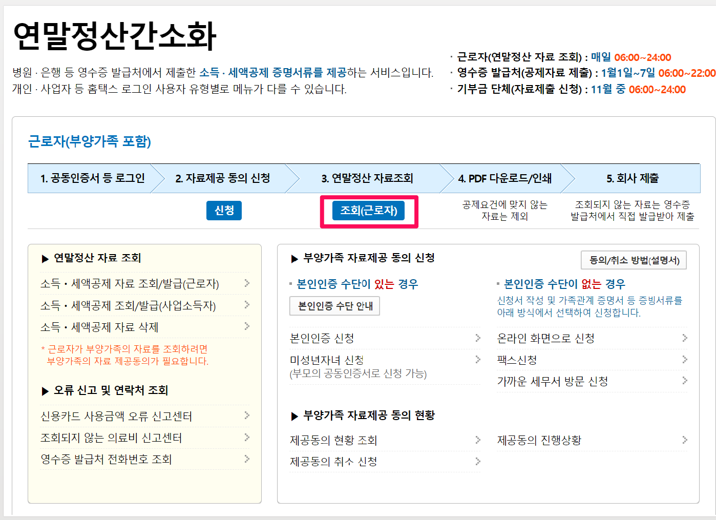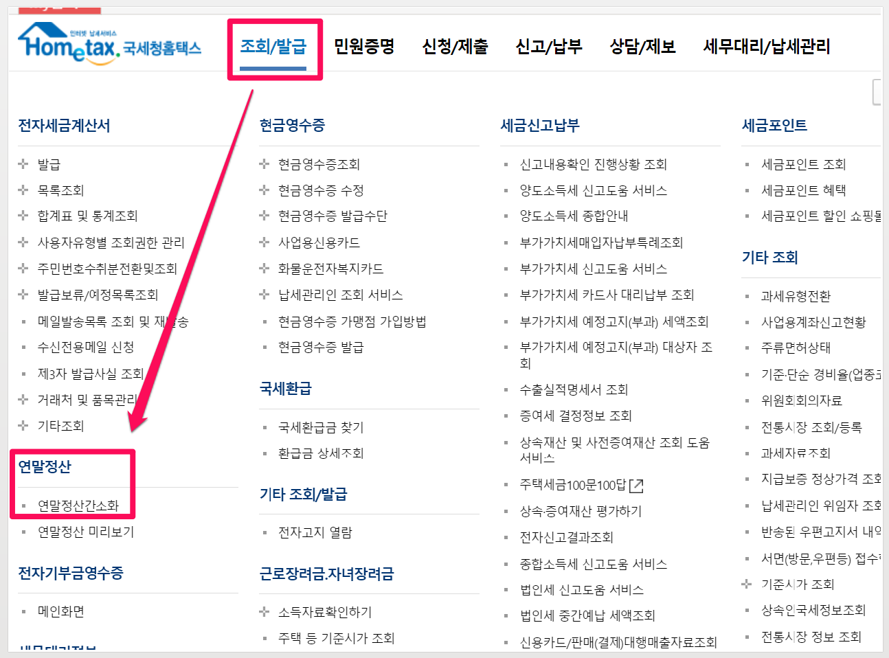 - 홈택스 > 조회/발급 > 연말정산 > 연말정산 간소화
