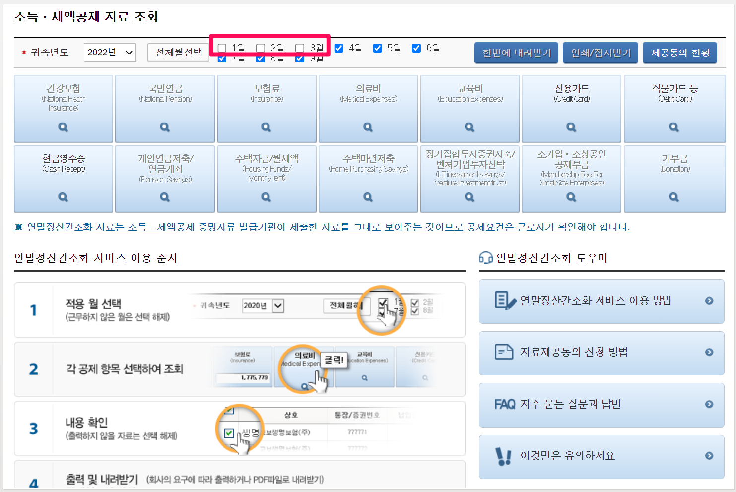 연말정산 선택한 달만 자료 다운로드하는 방법