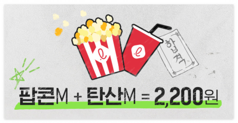 쿠폰을 받아 사용하면 팝콘 M과 탄산 M을 2200원에 이용할 수 있습니다.