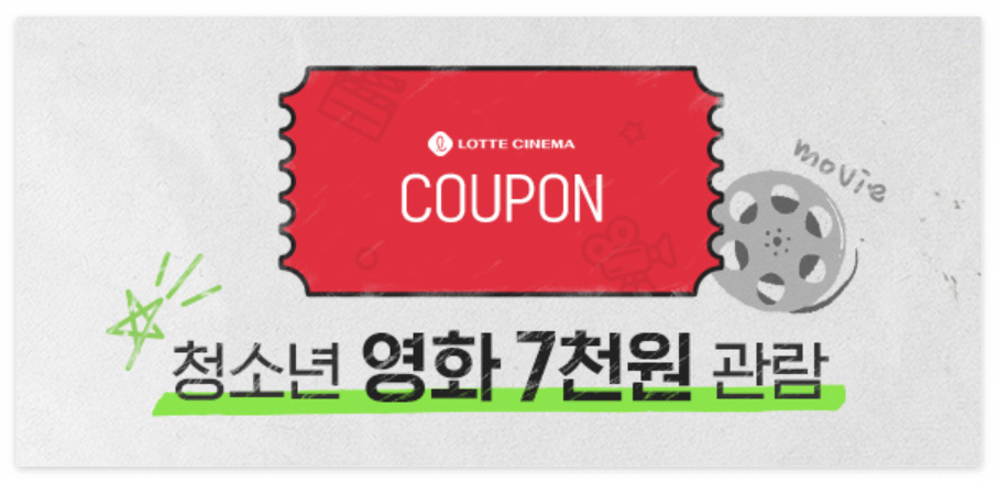 영화를 7천원에 관람할 수 있는 관람권입니다. 11월말까지 이벤트로 쿠폰을 다운로드하여 관람권을 받을 수 있습니다.