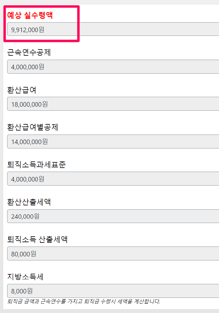 퇴직금 실수령액 계산기