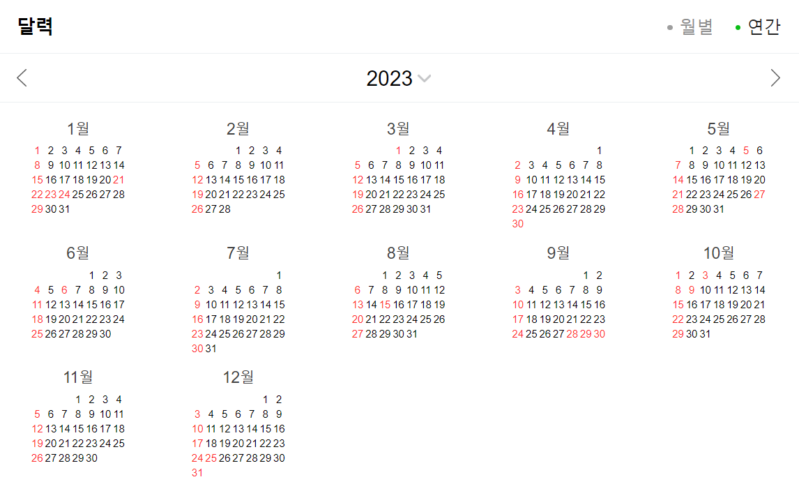 - 새해첫날: 1월 1일 일요일, 대체공휴일 없음