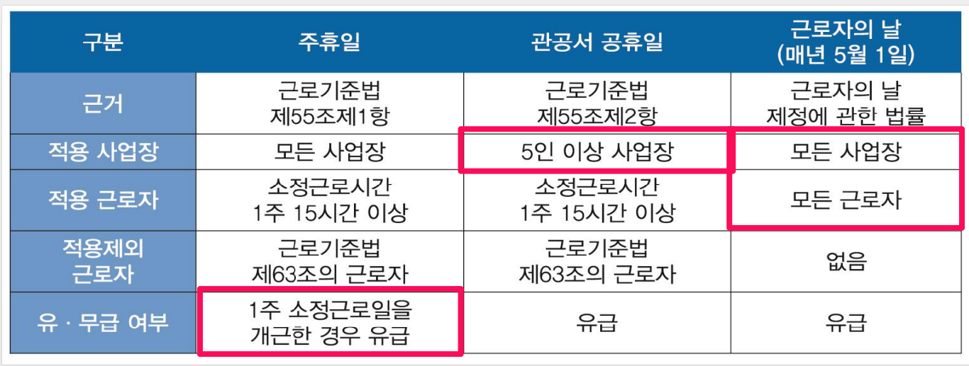 휴무일, 휴일, 주휴일, 공휴일, 유급휴일, 무급 휴일.. 너무 복잡하죠?