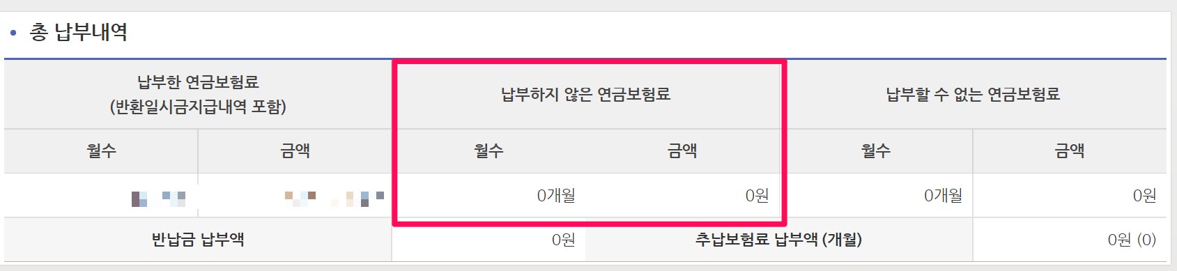 ▲ 납부하지 않은 연금보험료 부분을 확인합니다.