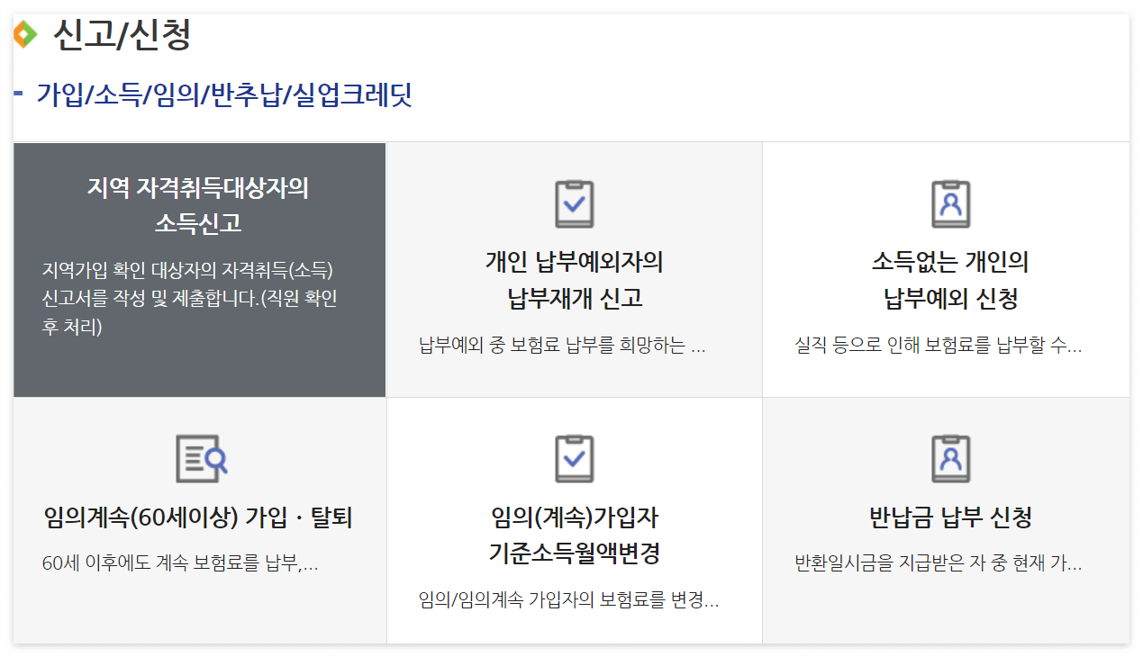 ▲ 지역 자격취득대상자의 소득신고를 선택합니다.