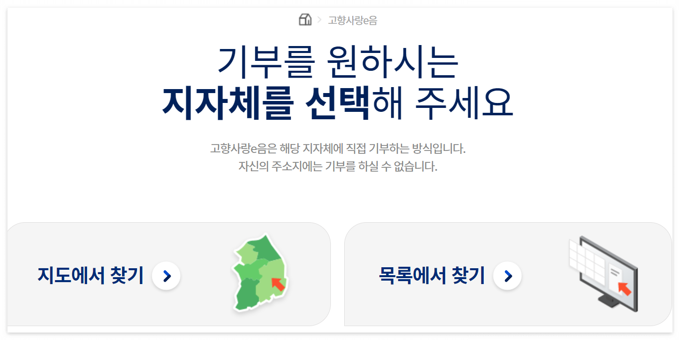 현재 주민등록 상 거주지를 제외한 원하는 모든 지자체에 기부가 가능합니다. 내 고향만 기부가 가능한 것이 아닙니다.