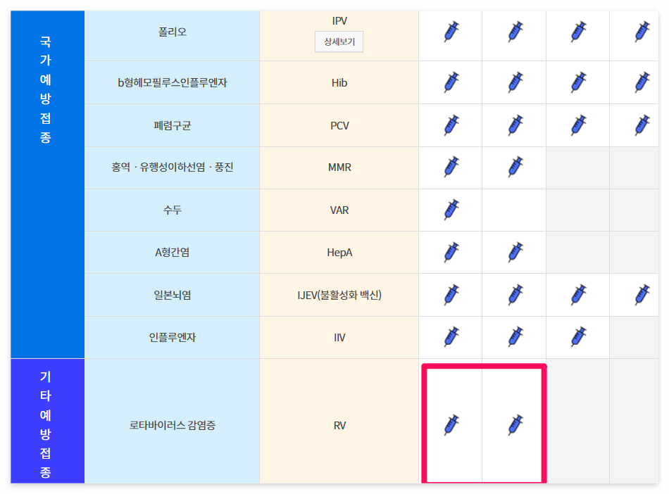 아이 주수를 잘 맞춰서 맞아야 하며 맞지 않는 시기에 접종하려고 할 때는 비용지원이 되지 않으니 유의하셔야 합니다.