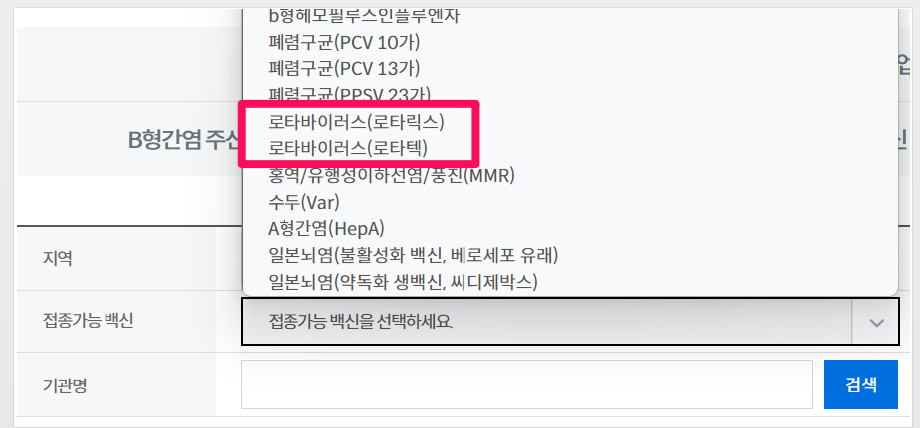 검색 후 검색 결과를 확인하여 병원에 미리 연락해보신 후 방문하시면 됩니다. 특히 로타텍, 로타릭스는 교차 접종이 되지 않으므로 1차를 이미 맞았다면 반드시 미리 접종했던 백신을 확인하세요.