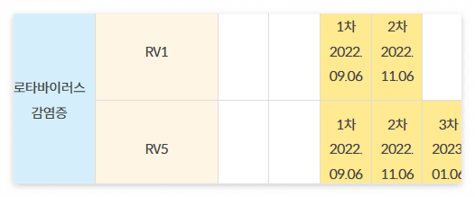 일반적으로는 2개월, 4개월, 6개월차인 1월 22일, 3월 22일, 5월 22일에 접종합니다. 일반적인 스케줄에 따르면 로타릭스는 2차, 로타텍은 2차, 3차를 무료로 접종할 수 있습니다.