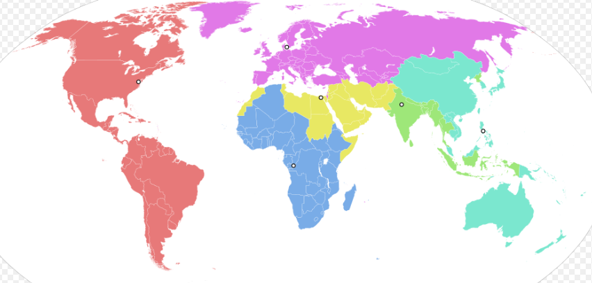 (아메리카와 아시아 등 다른 대륙에 있는 여러 국가에서 발병한 것을 의미합니다.)