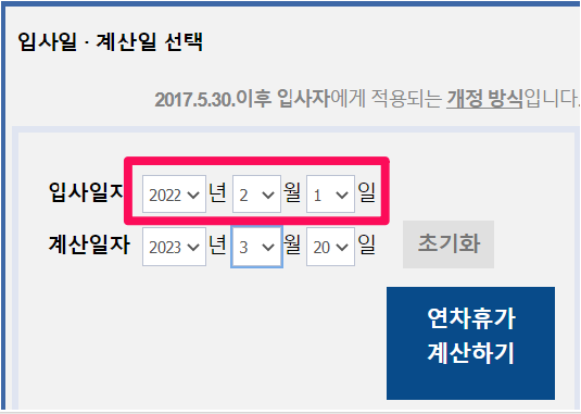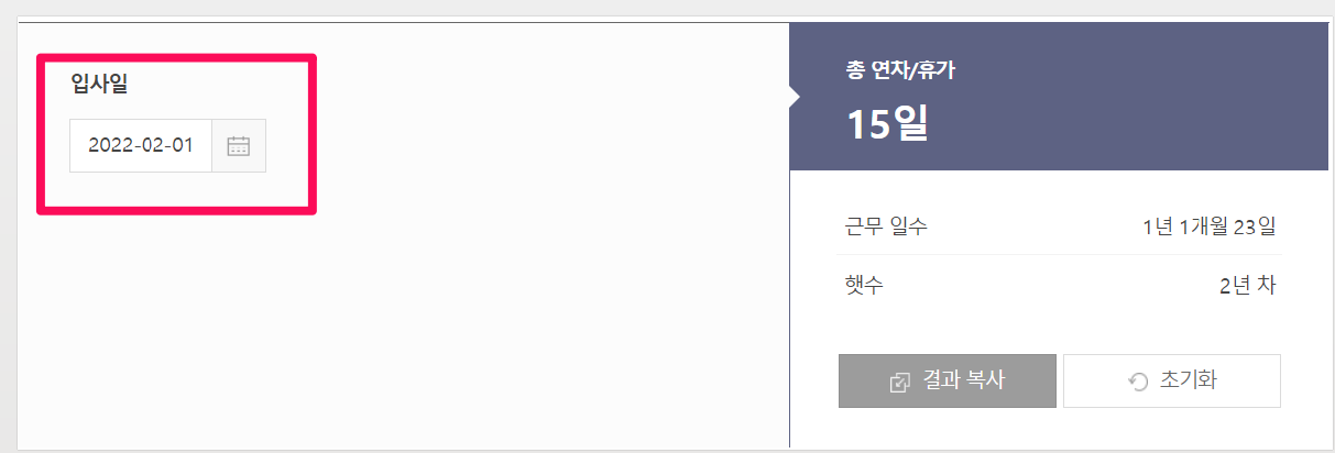 연차계산법을 이용해 스스로 계산해도 되지만 연차계산기를 이용해서 간단하게 계산할 수 있습니다.