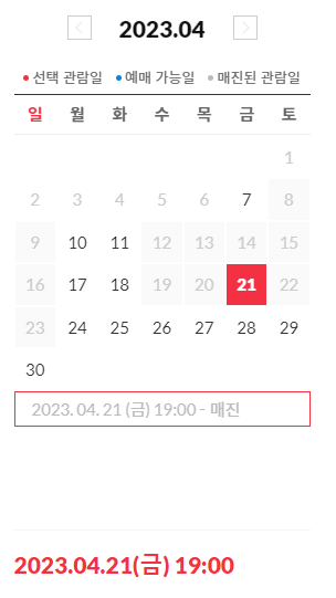 ○ 1차 예매기간: 3월 29일 10시부터 (관람기간: 4.5~4.23) (예매완료)