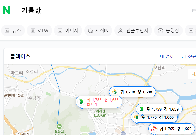 네이버에서 "기름값"으로 검색만 해도 주변 주유비를 바로 확인할 수 있습니다.