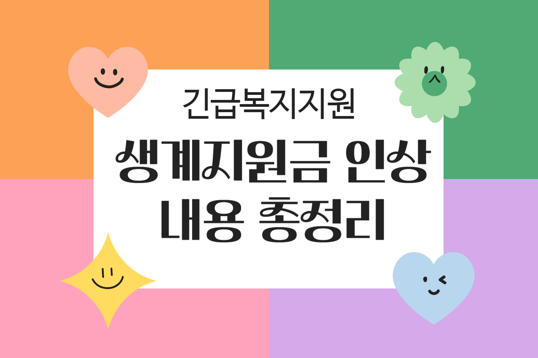 긴급복지 생계지원금은 실직으로 인해 소득이 갑자기 없어지거나 입원 등 위기 발생으로 인해 생계유지가 어려운 저소득층을 신속하게 지원하는 지원금입니다. 아래에서 금액이 얼마나 오르고 기준은 어떻게 달라지는지 차근차근 살펴보겠습니다.