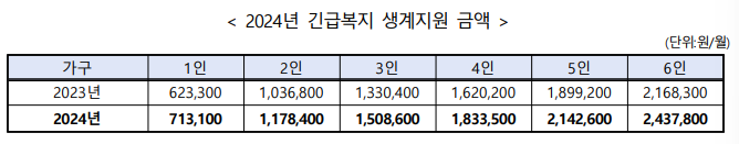 2024년부터 긴급복지 지원대상이 확대되고 지원금액이 인상됩니다.