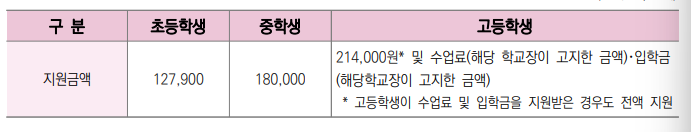 - 제외: 교육급여수급자, 고교학비 지원 등 타 교육지원을 받고 있는 경우에는 제외됩니다.