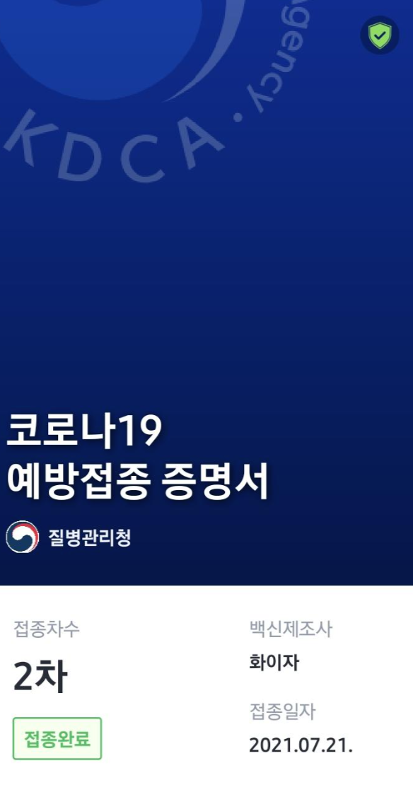 접종증명서가 은근 뿌듯합니다.