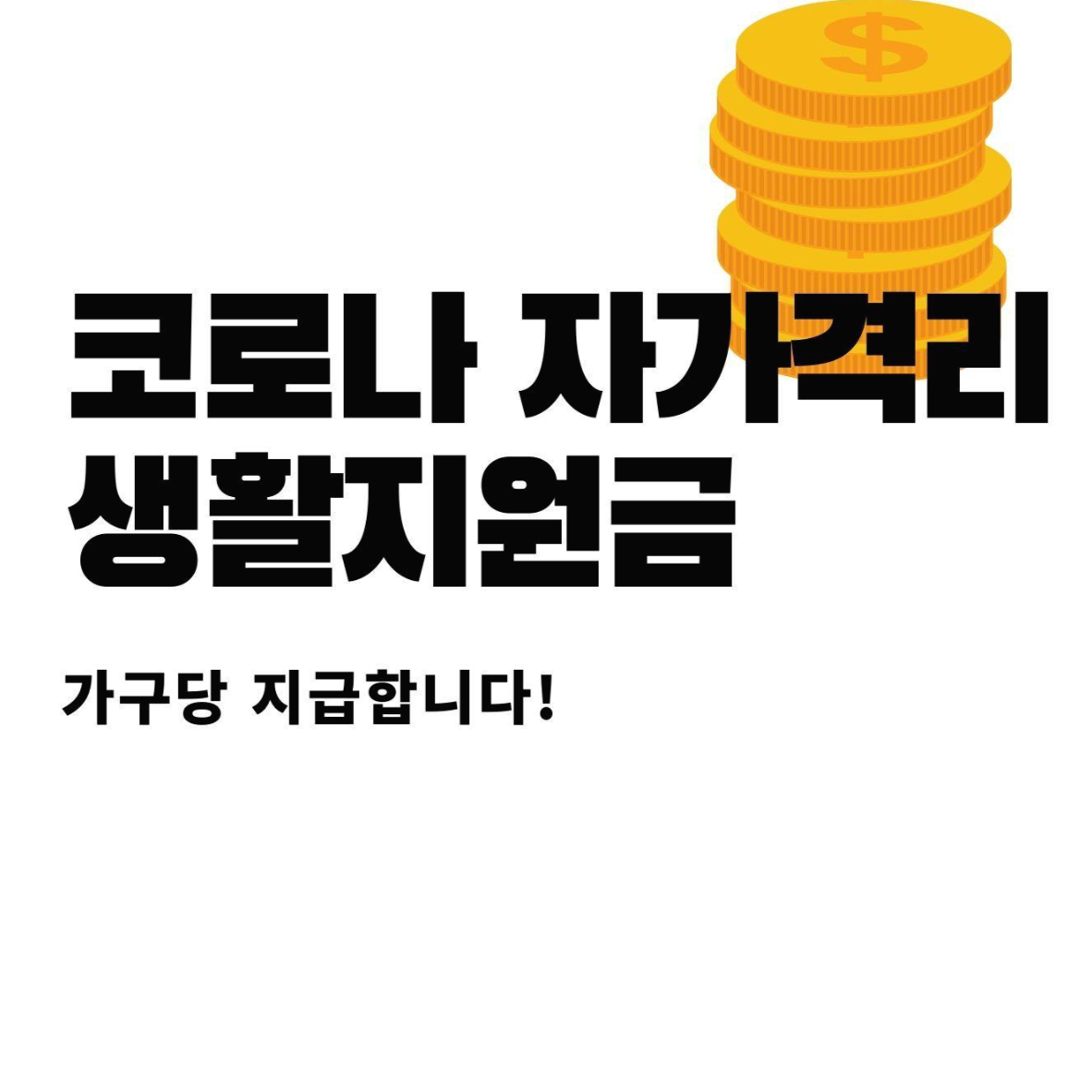 코로나19로 입원, 격리 통지를 받은 사람에게 지원되는 지원금으로 가구단위로 지급됩니다.